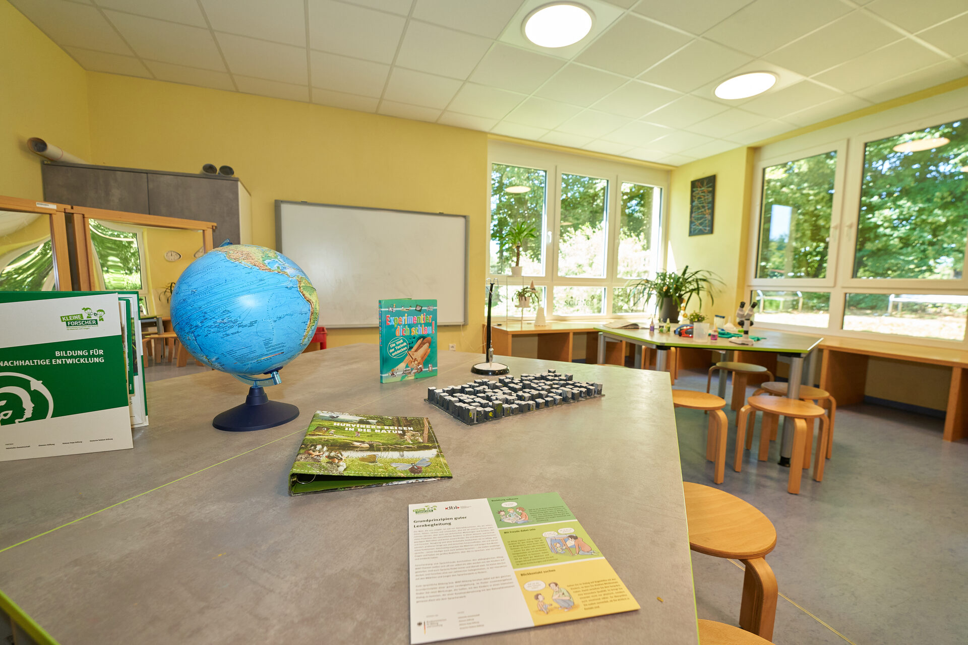 Unsere Einrichtung ist seit 15 Jahren ein zertifiziertes Haus zum Thema „Kinder forschen“. Neben großzügigen, hellen Gruppenräumen stehen unseren Kindern mehrere Funktionsräume zur Verfügung. - Bewegung und Natur im großen Hortgarten: