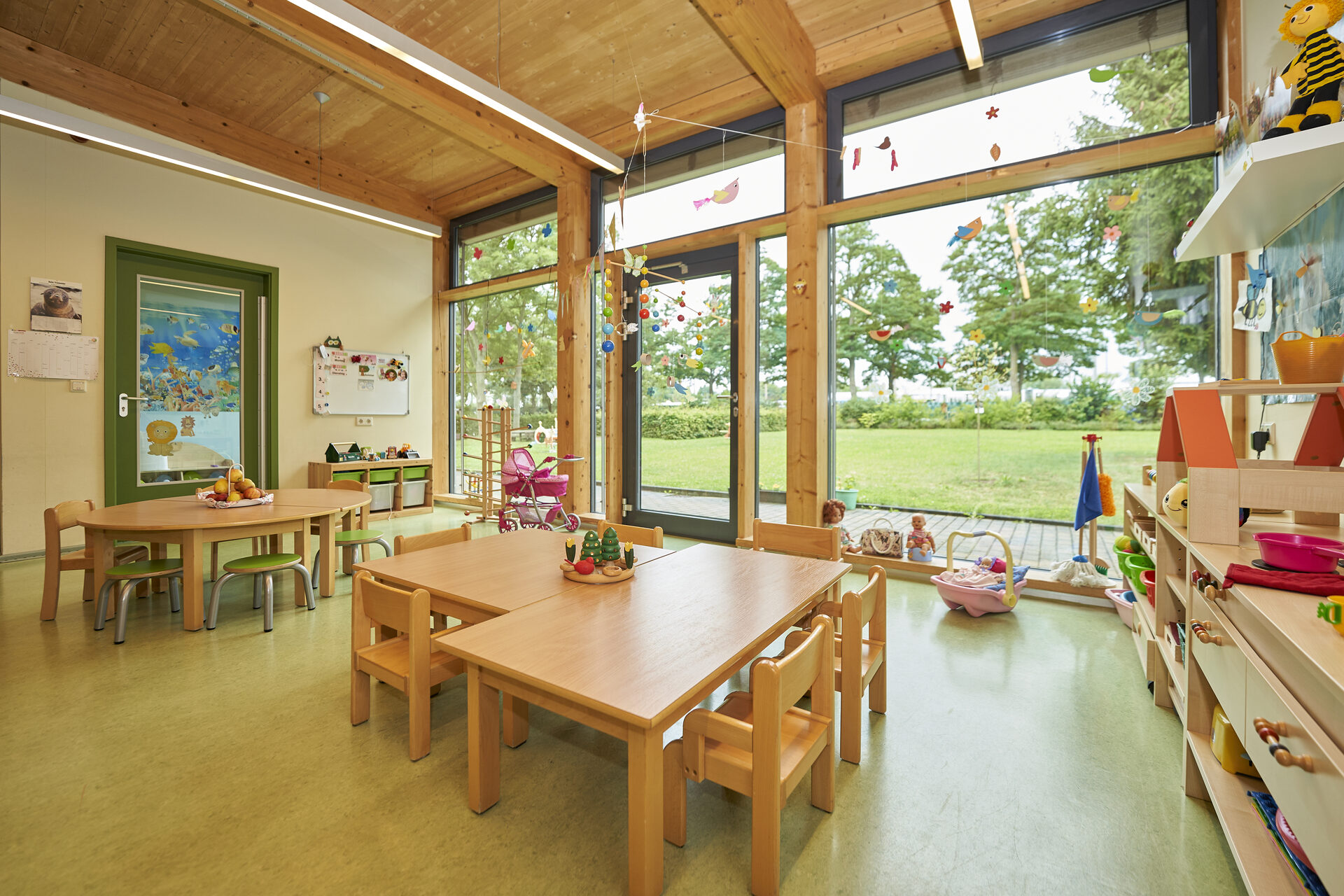 In beiden Häusern laden Kinderwerkstatt, Sport- und Bewegungsraum sowie eine Kinderküche zum Entdecken ein.