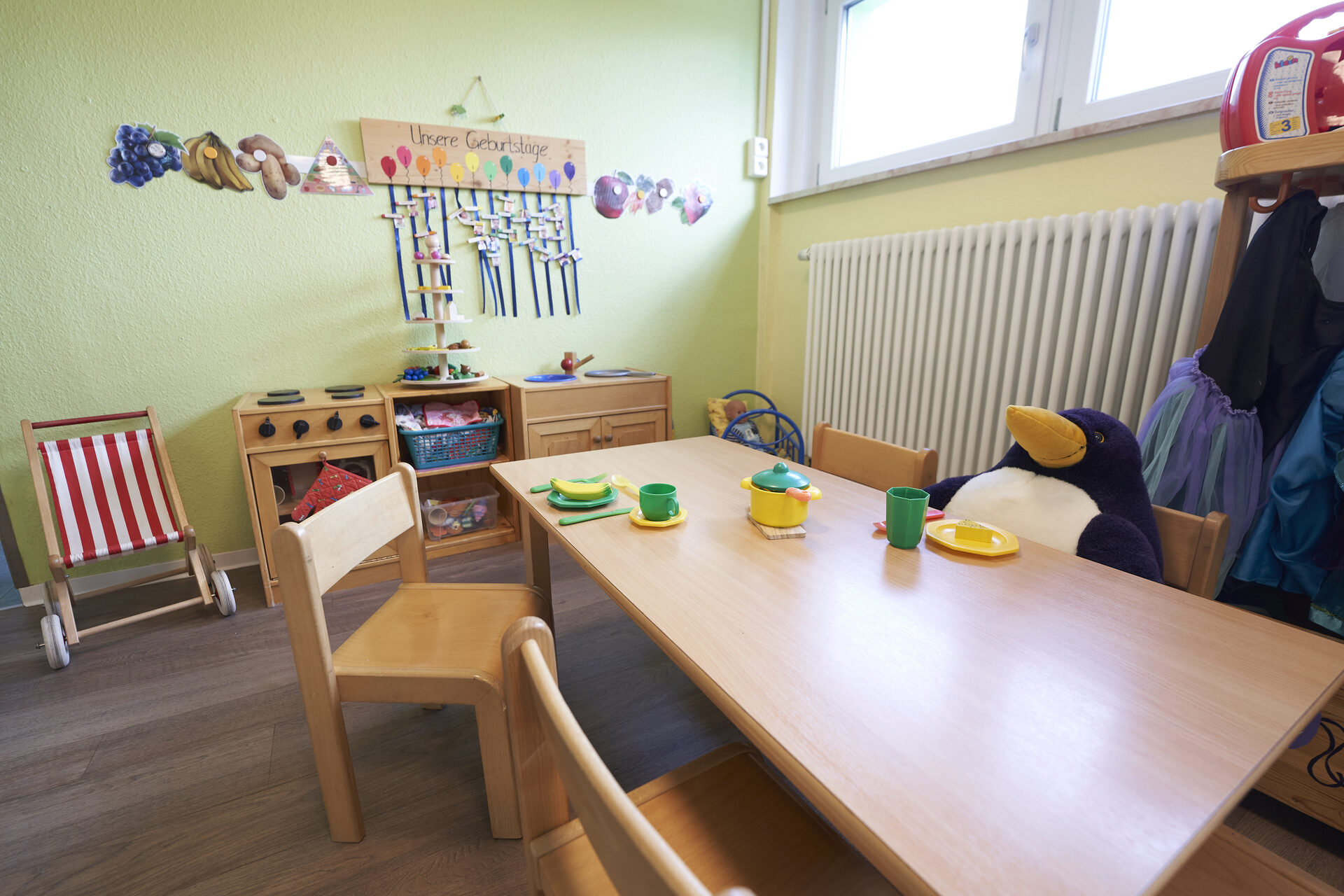 Jeder unserer beiden Gruppen steht ein separater Hausflügel im 1. Obergeschoss zur Verfügung. Diese gliedern sich jeweils in drei miteinander verbundene Gruppen- und Aktionsräume sowie einen Sanitärbereich.
