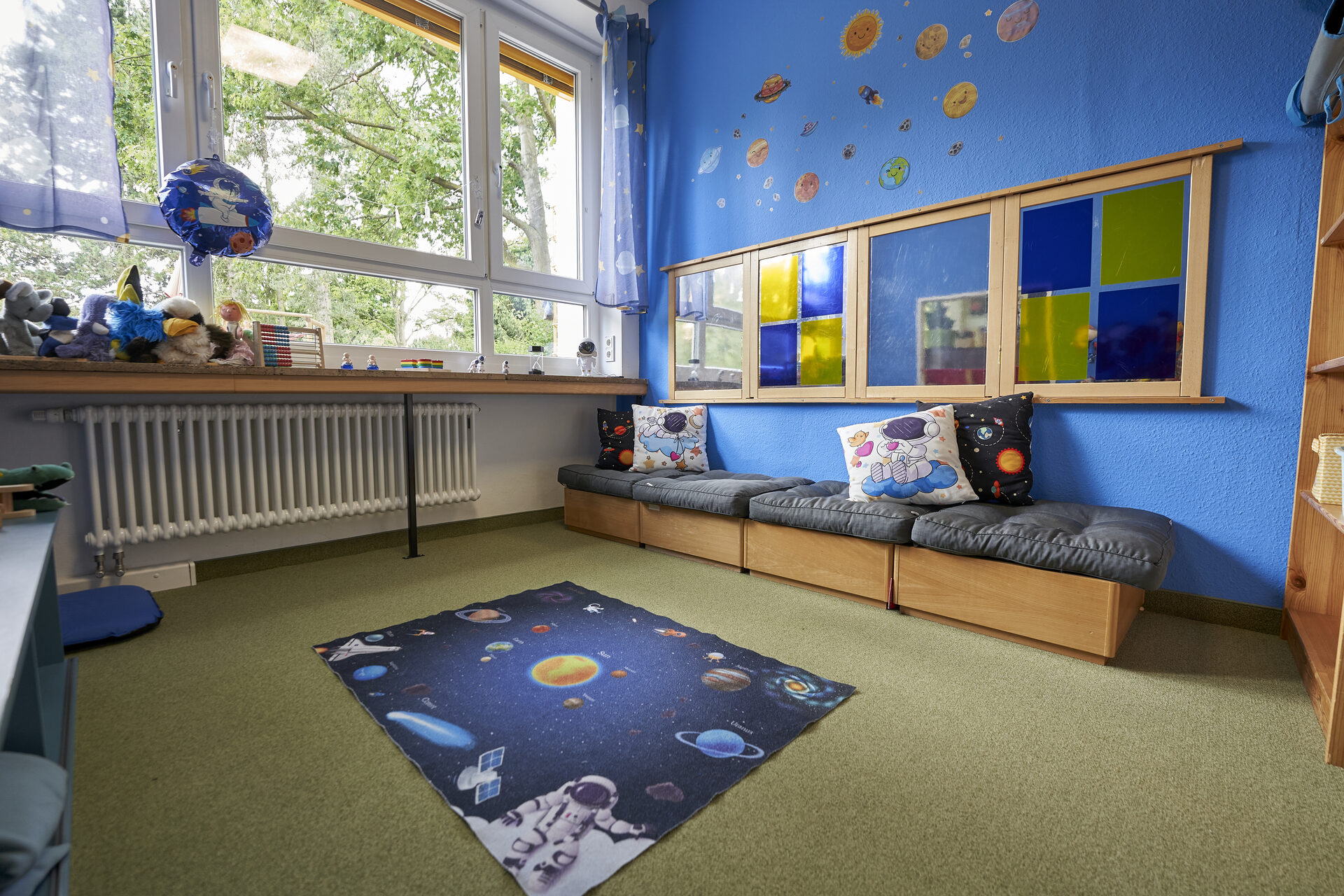 Snoezelen- und Galaxieraum stehen mittags den Aufstehkinder zur Verfügung.