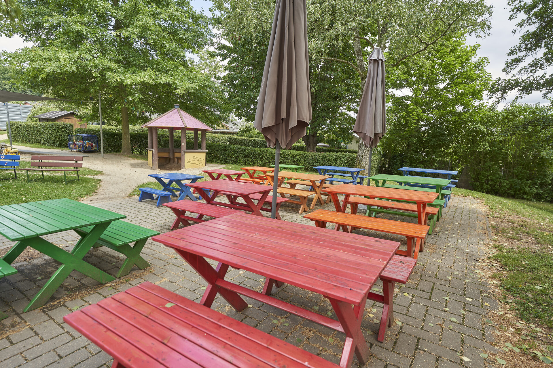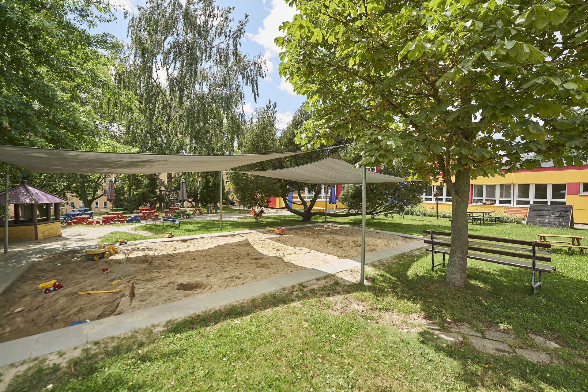Im 3700 Quadratmeter großen Außengelände mit viel Grün und Bäumen stehen unseren Kindern viele Möglichkeiten für verschiedene Aktivitäten zur Verfügung: